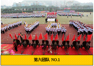 六名天威安保部同事高举天威第六届运动会会旗,在红旗方阵的簇拥下,走向主席台。六名旗手都是从部队军营里走出来的军人,他们步伐矫健,神情庄严;天威运动会会旗象征天威品牌在天威管理层的引领下锐意创新的精神,充分体现了运动会“你追我赶、奋勇争先;全员参与、和谐共赢;再创辉煌”的含义。