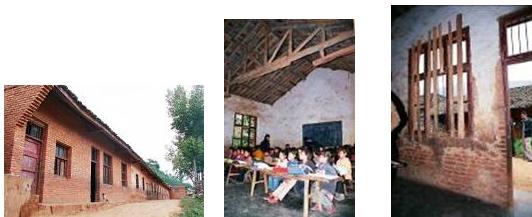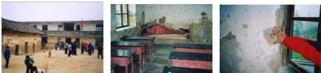 重建前 教学楼外貌 / 外墙已脱落 /教室内貌