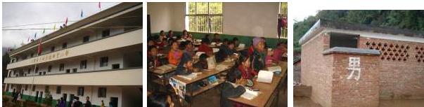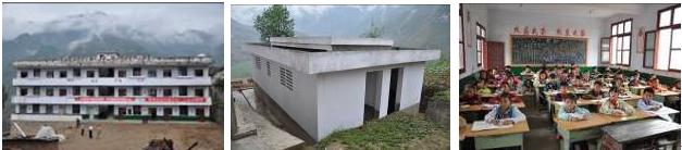 重建后 教学楼 / 学生在上课 / 新建的厕所