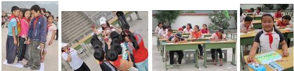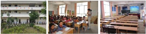 学校里配备了图书室、实验室、远程教育室(多媒体播放室)、电脑室,设备及使用情况都不错。电脑室目前有31台液晶显示屏电脑,由教育系统2011年上半年统一配置,5月安装到位,以后该校从三年级学生开始,就可以上信息技术课啦。图书室已有图书3744册,每年中心校还会按学生人均2册的标准补充配置。图书室里特别吸引人的角落是循环教材堆放区,原来当地政府要求音乐、体育、美术等类课程教材循环使用,学校将高年级学生教材回收,在低年级学生上课时再发放,每年用于循环的教材达到1/3,真是很环保的做法!多媒体播放室设施一应俱全,电脑、电视、投影仪、DVD播放器、音箱、卫星网络接收设备等,使用情况可见老师之用心,大多数科目老师都会将网络下载资源制作成课件或将课程做成幻灯片,在这里播放给学生们看,所以管理课室的老师笑着说:“很抢手!”