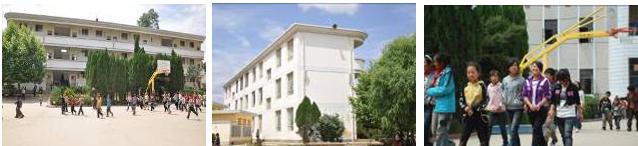 站在操场上看学校,非常漂亮。教学楼和教师宿舍楼依阶而上,教学楼上“团结、奋进、求实、创新”的口号引人注目。台阶两旁,是绿树和小石雕,小石雕上分别刻着“勤”、“致远”、“学而不厌”等字样。红瓦白面的矮围墙将学校围住,宽敞的操场上有篮球架,有休息的石桌凳,有一个金属制的乒乓球台。操场边的绿化带,一边彩旗飘飘,一边开花多朵,非常美丽。操场一侧,天慈捐建的厕所,保养也很好。