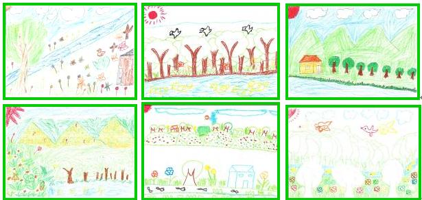 环保手册一发下来,孩子们就如饥似渴地阅读起来,在图书资源匮乏的山区,他们的求知欲仍然是那么强烈,不少孩子甚至很快背得出册子中的内容。游戏环节,特别展现了孩子们爱闹爱玩的天性。在“地球的负担”游戏中,他们争先恐后站在“地球”上,但小小的地球,哪能容纳那么多人?挤不进去的同学只能黯然退出。地球上的人,再来喝一壶水,水不多,喝不到的同学,也只能退出游戏……地球资源不是取之不尽的,如果不节约,出路在哪里?通过这种寓教于乐的方式,帮助孩子们树立了节约资源、保护地球的价值观。“和你在一起”游戏中,学生们纷纷扮演起小河、小树、各种生物,以及砍树人。地球生物需要和谐共存,如果乱砍乱伐、地球生态被破坏,包括人在内的各类生物只能纷纷倒下,留得一片荒芜……触目惊心的事实,让孩子们怎能不爱护森林、尊重生物、保护大自然呢?与此同时,小小画家们也拿起画笔,画出他们心目中的美丽地球。“我手画我心”,被大山滋养的孩子,她们眼中的地球,总是有蓝天、白云、绿树、小鸟……我们给每位小画家都送上了一盒DISNEY彩笔。
