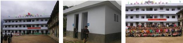 重建后 教学楼正面 / 厕所 / 师生与天威及苗圃义工在新教学楼前大合照